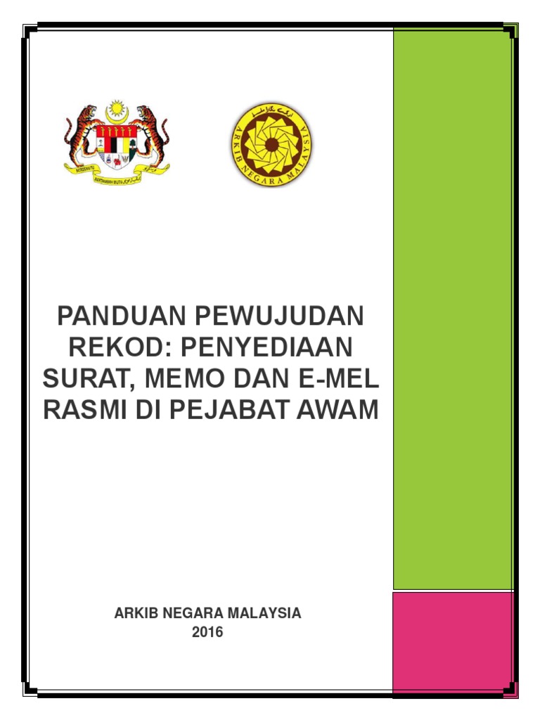 Garis panduan bagi penganjuran majlis/acara rasmi kerajaan dan jamuan keraian rasmi kerajaan 1. Panduan pengurusan surat rasmi kerajaan 1. Garis panduan ini disediakan sebagai satu panduan untuk semua penjawat awam di kementerian/jabatan/agensi kerajaan apabila menguruskan tindakan bagi mengelas dan mengelaskan semula suratan, maklumat dan bahan rasmi mengikut peruntukan akta rahsia rasmi 1972 (akta 88) dan surat pekeliling am bil. Bertarikh 15 februari 1958dan surat rasmi bertajuk. Format surat rasmi arkib negara malaysia (muka surat kedua) pengakhiran surat berkhidmat untuk negara nombor rujukan surat atas sebelah kiri setiap helaian surat 1 kali jarak single spacing 3 kali jarak single spacing nama pengirim ditulis dengan huruf besar dan tebal. 1) surat rasmi disediakan apabila berhubungan dengan agensi kerajaan, swasta dan individu bagi menyampaikan maklumat, arahan, keputusan, jemputan atau memohon maklumat, pertimbangan dan kelulusan. Pembukaan & pengakhiran surat 7. Saya berharap dengan adanya garis panduan format penulisan ini, segala hal yang berkaitan dengan protokol penulisan rasmi Pengenalan surat rasmi merupakan salah satu cara perhubungan yang penting di antara agensi kerajaan dengan agensi kerajaan yang lain dan orang ramai. Garis panduan kontrak ict bagi perolehan Panduan pengurusan surat rasmi kerajaan 1. Surat kiriman rasmi ialah surat formal yang dibuat khusus bagi tujuan dan perhubungan yang rasmi. Seiring dengan perkembangan teknologi maklumat, surat kiriman rasmi kini boleh dihantar melalui emel dengan segera selain melalui pos, penghantaran tangan mahupun faks.
